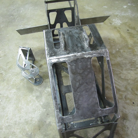 Above: Steel skeleton components of an eight-foot-tall, 700-pound educational robot.